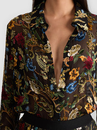 The Willa: our signature, best-selling blouse body that everyone loves-for good reason. This romantic take is crafted in a floral printed silk satin burnout that catches the light with a soft, luminous finish. Semi-sheer and fluid, it features a crisp collar, hidden placket, and an effortless drape that moves beautifully from day to night. Tuck it into tailored trousers or layer it over a camisole for an elevated take on everyday dressing-the kind of top that does it all. DETAILS - Button down - Printed silk satin burnout - Long sleeve - Semi sheer - Hidden placket - Front button closures - 63% viscose, 37% silk - Dry clean only - Imported FIT - Model is 5'10" and wearing a size XS - Length from the shoulder: 24" - Fits true to size, take your normal size
