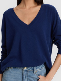 Fuzzy, ultra-soft cashmere is our favorite kind of indulgence-which is exactly why we’re obsessed with the Williams Pullover. Brushed for a plush, mohair-like texture, this blue v-neck sweater is impossibly soft to the touch. The relaxed fit and curved hem make it effortlessly easy to wear: tuck it into denim, layer it over a mini skirt, or throw it on with loungewear. It always works. DETAILS - Cashmere pullover - V neck - Relaxed fit - Long sleeve - Curved hem - 98% cashmere, 2% nylon - Dry clean only - Imported FIT - Model is 5'10" and wearing a size XS - Length from the shoulder: 21 1/2" - Fits true to size, take your normal size