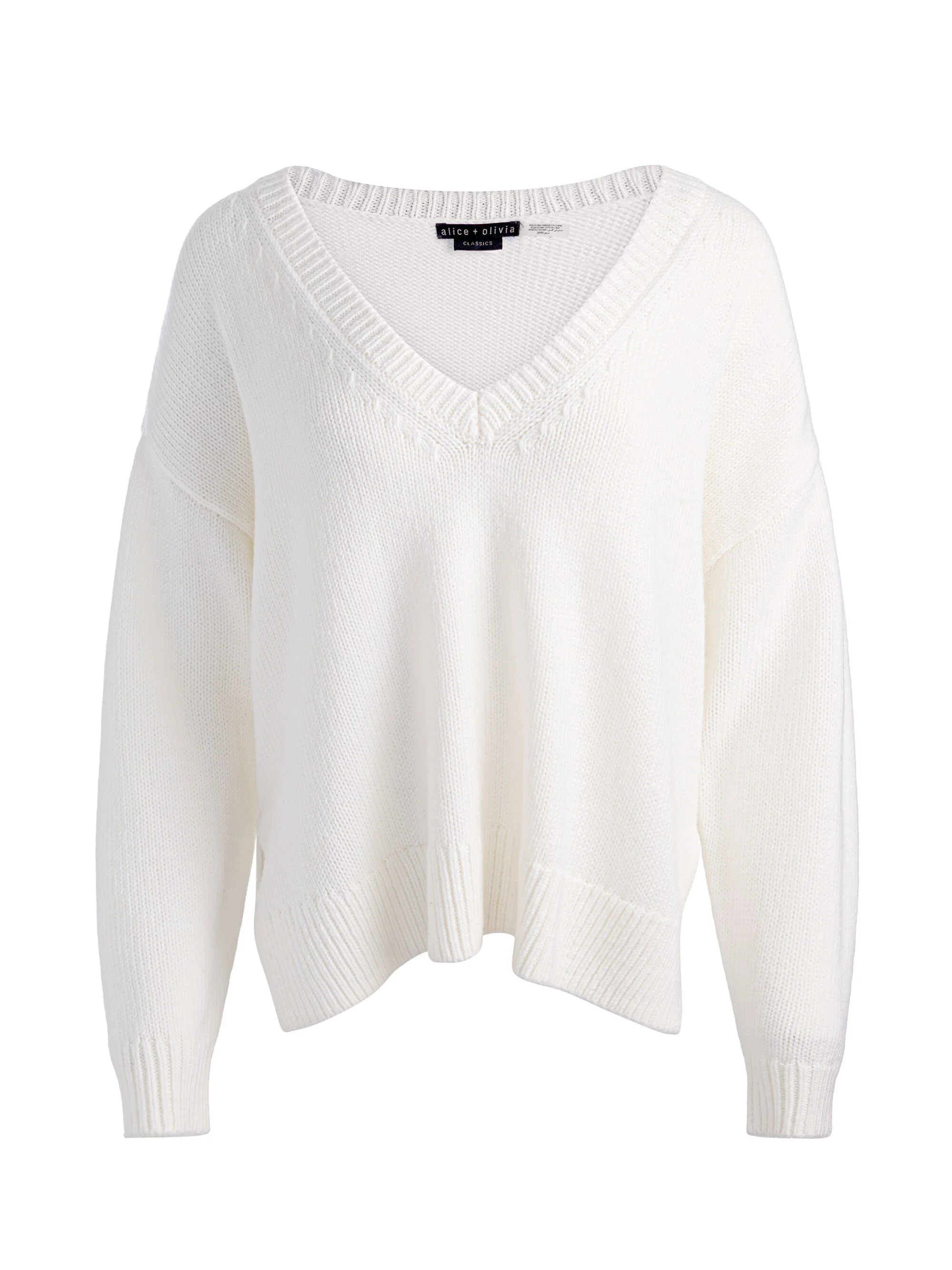 A fresh take on the timeless white V-neck sweater, our Williams Pullover is reimagined in ultra-soft merino wool for a thicker knit and a more structured look. Subtle side slits add an easy, relaxed feel, making it endlessly wearable. Pair with denim, layer over a miniskirt, or throw on with loungewear--it just works, every time. DETAILS - Wool V-neck sweater - Side slits - Relaxed fit - 100% ultra fine merino wool - Dry clean only - Imported FIT - Model is 5'10" and wearing a size XS - Length from the shoulder: 24" - Fits true to size, take your normal size