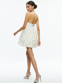 WILMARIE EMBELLISHED LACE RUFFLE MINI GOWN