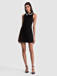 A modern take on the LBD. The Velia dress features a tailored sleeveless silhouette with a crisp collared neckline and subtle A-line shape that skims the body just right. Designed in structured twill sateen, it blends sophistication with a touch of edge-making it perfect for work, date night, or that in-between moment when you need to look pulled together in an instant. DETAILS - Mini dress - Twill sateen - A-line fit - Collared neck - Back zipper closure - 64% polyester, 32% viscose, 4% elastane - Dry clean only - Imported FIT - Model is 5'10" and wearing a size 0 - Length from the shoulder: 33" - Fits true to size, take your normal size