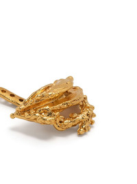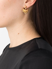 curve drop-bar earrings gold-tone gold-plated bronze drop design abstract pendant barbell design These earrings come as a pair. Made in United Kingdom SIZE & FIT Model measurements Height 5 ft 10 in(1.78 m) Bust/Chest 31.49 in(80 cm) Hips 36.22 in(92 cm) Waist 25.59 in(65 cm) Measurement HEIGHT 0.98 in(2.5 cm) Weight (single earring) 3 g(3 g) WIDTH 0.74 in(1.9 cm)