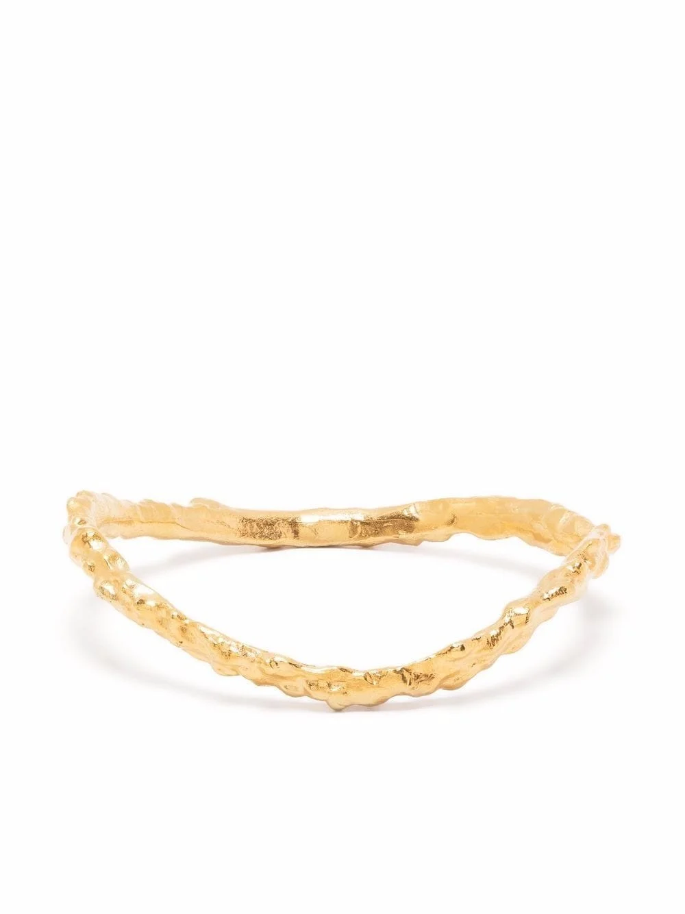 gold-plated The Inferno bangle Alighieri's The Inferno bangle is inspired by poet Dante's poem of the same name. It's handcrafted from 24kt gold-plated gold in a curved silhouette at London's famed Hatton Garden jewellery district. The hammered effect gives it an antique feel. Highlights - Hand-hammered effect - Curve-edge body - Slip-on style Made in United Kingdom SIZE & FIT Model measurements Height 5 ft 10 in(1.78 m) Bust/Chest 31.49 in(80 cm) Hips 36.22 in(92 cm) Waist 25.59 in(65 cm) Measurement CIRCUMFERENCE 7.99 in(20.3 cm)