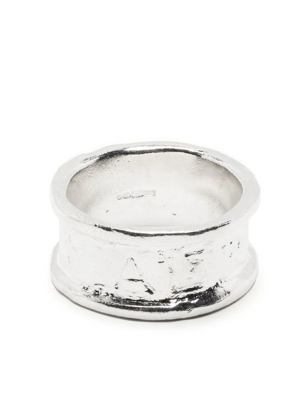 The Alighieri ring Alighieri draws inspiration from Dante's 'Divine Comedy’, with each jewellery piece corresponding to one of the poet’s 100 poems. Handcrafted from recycled sterling silver, this ring gets its name from the embossed lettering surrounding the piece. Highlights - Silver - Sterling silver - All-over embossed logo - Handcrafted effect Made in United Kingdom SIZE & FIT Model measurements Height 6 ft 1 in(1.85 m) Bust/Chest 35.82 in(91 cm) Hips 37.79 in(96 cm) Waist 29.13 in(74 cm) Measurement Band Width 0.43 in(1.1 cm) CIRCUMFERENCE 2.48 in(6.3 cm)