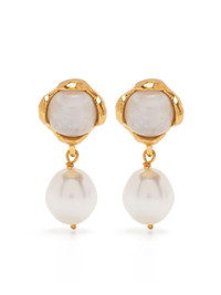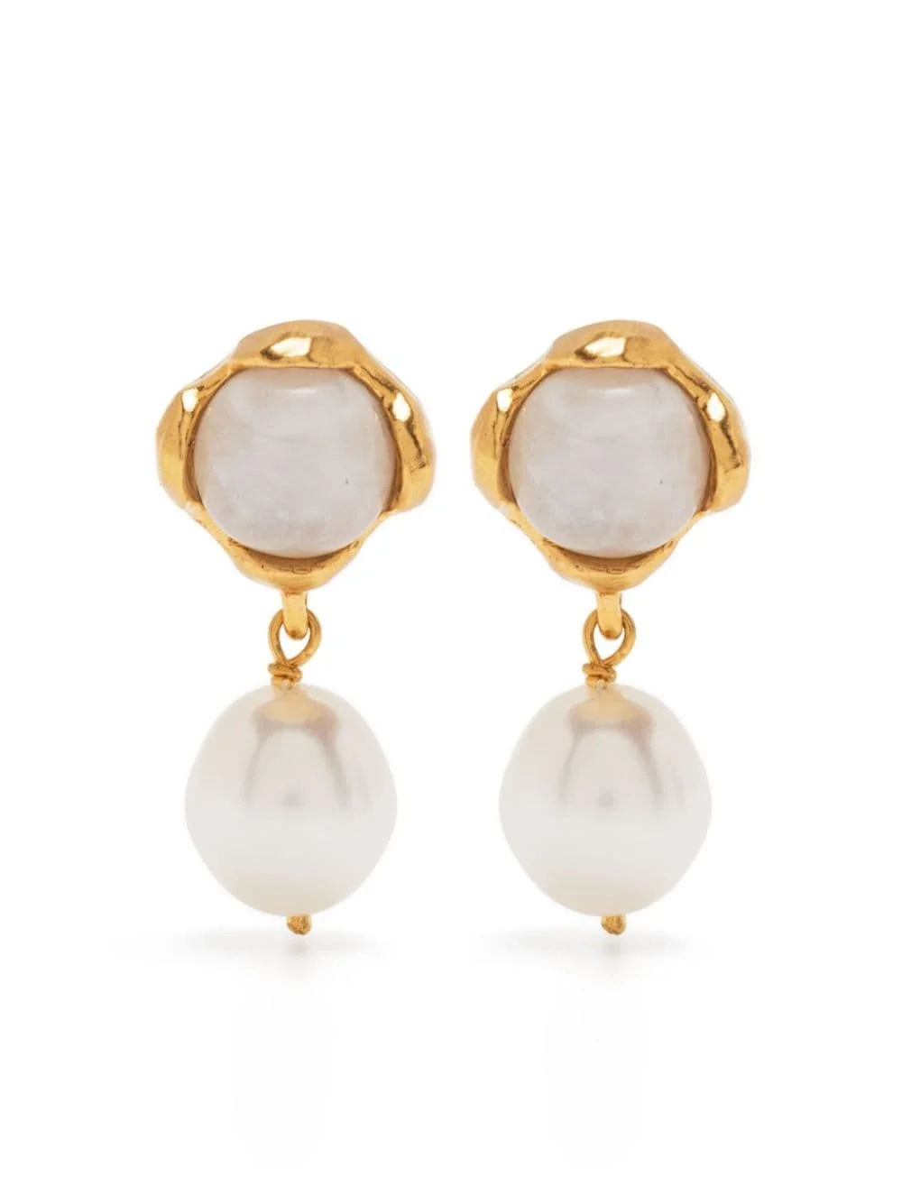 The Moonlight Capture pearl earrings Handcrafted in the United Kingdom from 24kt gold-plated bronze, Alighieri's The Moonlight Capture earrings juxtapose moonstones and freshwater pearls, set in molten gold. Highlights - 24kt gold plated - Moonstone - Freshwater pearls - Butterfly fastening - For pierced ears - These earrings come as a pair. Made in United Kingdom SIZE & FIT Model measurements Height 5 ft 9 in(1.76 m) Bust/Chest 31.1 in(79 cm) Hips 35.03 in(89 cm) Waist 24.4 in(62 cm) Measurement HEIGHT 1.18 in(3 cm) Weight (single earring) 2.2 g(2.2 g) WIDTH 0.78 in(2 cm)