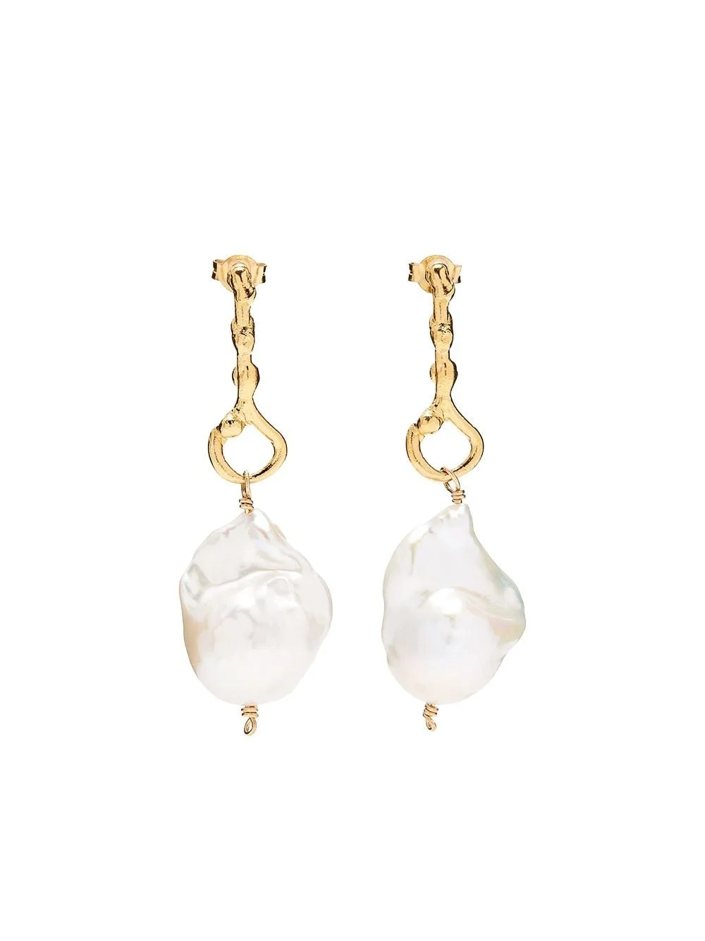 The Olive drop earrings The Olive drop earrings from Alighieri featuring gold plated, bronze, butterfly fastening, drop design, pearl detail and for pierced ears. These earrings come as a pair.. Made in United Kingdom
