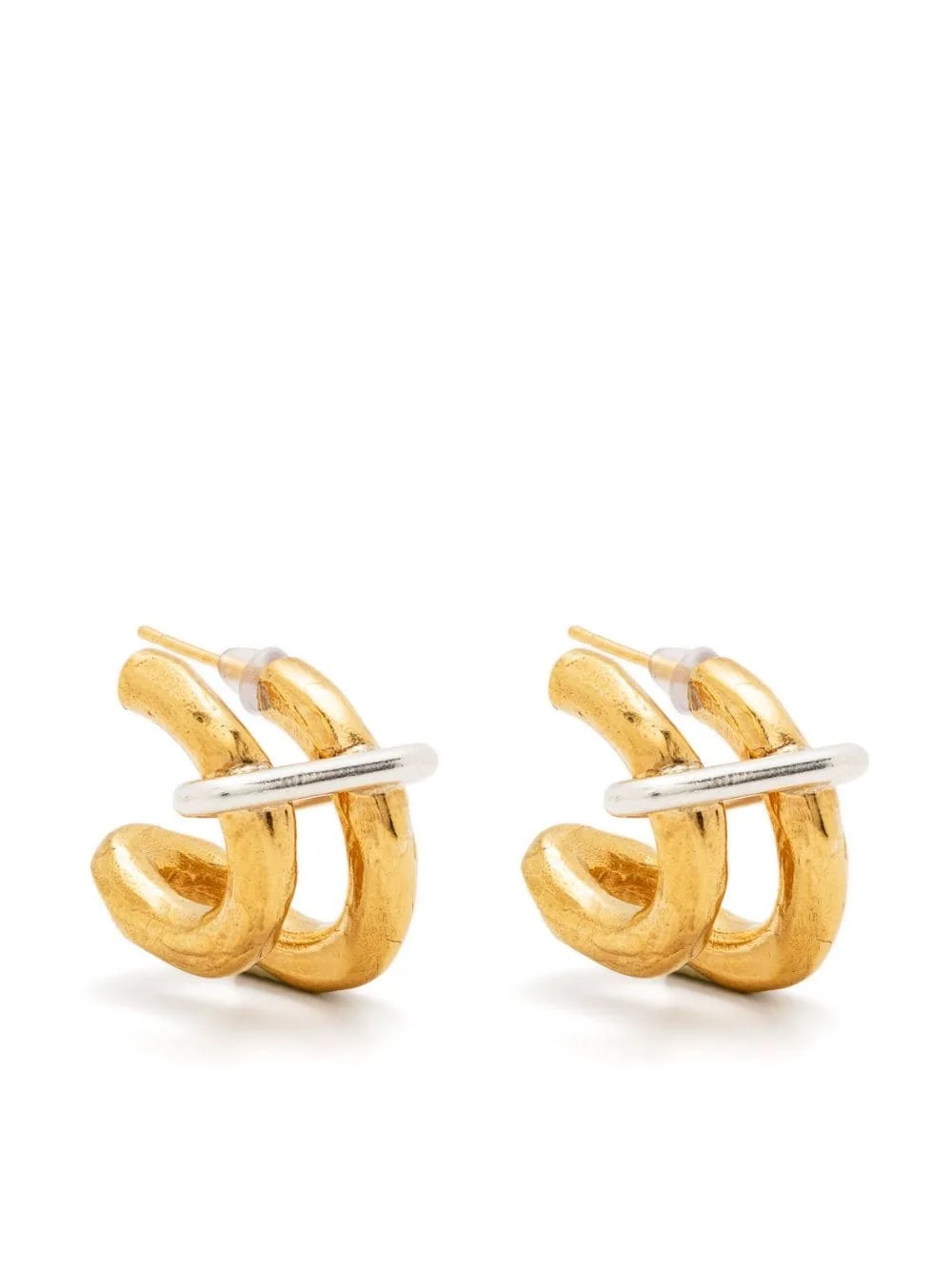 The Sun Salutations hoop earrings Alighieri's penchant for artisanal design is evidenced in these The Sun Salutations earrings. Crafted from recycled sterling silver and 24kt gold-plated bronze, they boast a hand-hammered effect that is characteristic of the British brand. Highlights - Recycled sterling silver/24kt gold plated bronze - Small hoop design - Hand-hammered effect - Post-back fastening - For pierced ears - These earrings come as a pair. Made in United Kingdom SIZE & FIT Model measurements Height 5 ft 10 in(1.79 m) Bust/Chest 33.07 in(84 cm) Hips 35.82 in(91 cm) Waist 24.01 in(61 cm) Measurement HEIGHT 0.86 in(2.2 cm) Weight (single earring) 9 g(9 g) WIDTH 0.62 in(1.6 cm)