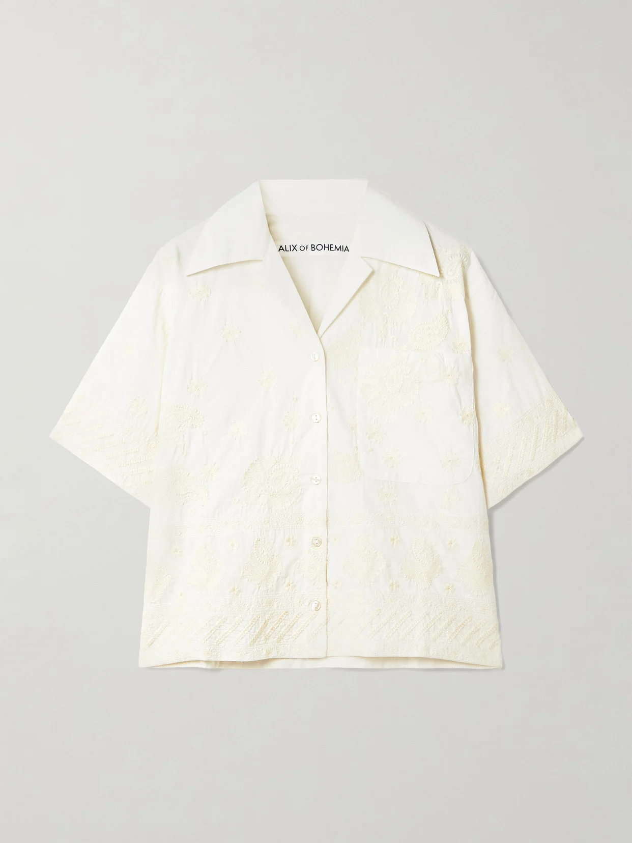 Alix of Bohemia's 'Stevie' shirt takes cues from retro bowling styles. Cut for a relaxed, boxy fit, it's made from cotton and hand-embroidered with paisley swirls, flowers and stripes. Leave a few of the buttons undone to enhance the laid-back feel.
