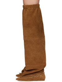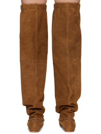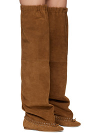 Thigh-high suede boots in brown. · Lace-up detailing throughout · Bow accent at vamp · Elasticized collar · Leather sole with rubber injection Supplier color: Brown Upper: leather. Sole: leather, rubber. Made in Italy 251098F115005