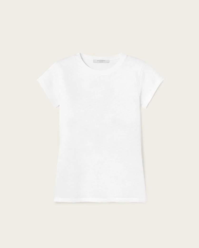 Anna Crew Neck Short Sleeve T-Shirt An easy piece, this is the Anna T-Shirt. Crafted from soft organic cotton, it's shaped to a regular silhouette. Featuring turned-up cuffs and our AllSaints signature on the back of the neck. We keep this staple on rotation all year round - make it part of your collection. - Pullover - Crew neck - Short sleeves - Turned up cuffs - AllSaints signature logo - Model is wearing size Small FABRIC & CARE: - 100% organic cotton - Machine wash inside out Made in: Portugal Product ID: USW238JB-4068