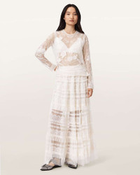 Arlea Tulle Maxi Skirt What can we say about our Arlea Skirt? Playful drama with layers of sheer lace that creates a signature shape. Wear it with the matching top for maximum impact. - Pull on - Lace panels - Branded elasticated waistband - Tulle and lace mix - Measurements (taken from CB to hem): 98cm - The model is 5'9.5" and is wearing size US 4 FABRIC & CARE: - Shell: 100% recycled polyester - Lace: 100% polyamide - Lining: 100% recycled polyester - Mild machine wash Made in: India Product ID: USW031RD-4902