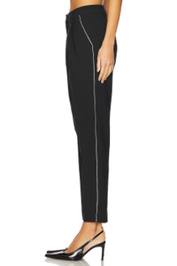 - Self: 43% recycled polyester 32% viscose 23% wool 2% elastane Pocket Lining: 100% recycled polyester - Made in China - Dry clean - Zip fly with dual hook and bar closure.4-pocket styling - Front pintuck detailing - Suiting fabric with crystal embellished trim at sides Item not sold as a set.16" at the knee narrows to 12" at the leg opening - Revolve Style No. ALLR-WP47 - Manufacturer Style No. W007QB