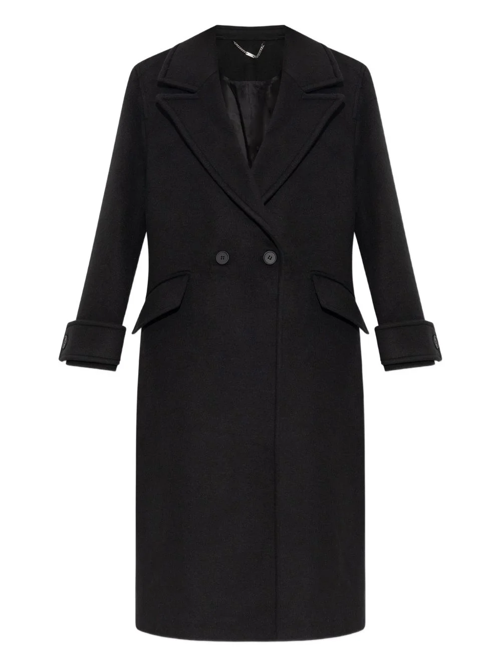 double-breasted lapel coat Highlights - Black - Double-breasted fastening - Notched lapel - Long sleeves - Flap pockets - Straight hemline Imported Composition Outer: Recycled Acrylic 43%, Recycled Polyester 32%, Recycled Wool 20%, Recycled Polyamide 3%, Viscose 1%, Recycled Cotton 1% Lining: Viscose 100%, Recycled Polyester 60%, Elastomultiester 40% Washing instructions Read Manufacturer Guidelines