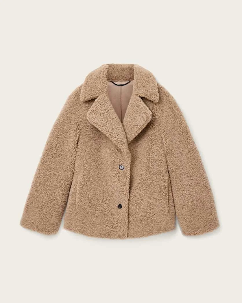 Eddie Faux Teddy Jacket Radiate warmth (whilst keeping yourself cozy too) with the Eddie Faux Teddy Jacket, a stylish option made for this winter and beyond. - Button closure - Lapel collar - Long sleeves - Leather branded patch - Model is 5'10" and wearing size Small FABRIC & CARE: - 100% recycled polyester - Base: 100% polyester - Dry clean only Made in: China Product ID: USW043OE-4813