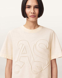 Lisa Embossed Crew Neck T-Shirt A classic fit for any season, our iconic Lisa T-Shirt has had an update (of course with that signature AllSaints twist). - Pull over - Crew neck - Short sleeves - Boxy style - AS embossed across the front - Model is 5'8" and wearing size Small FABRIC & CARE: - 100% organic cotton - Mild machine wash Made in: Portugal Product ID: USW148JE-10251