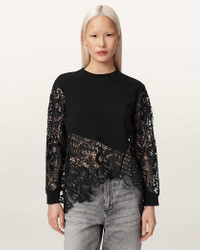 Malorie Asymmetric Top A leading lady that is a true triple threat, the Malorie Top is a show stopper you need on your radar. After a piece that takes centre stage at the office and date night? Look no further. - Pull over - Crew neck - Long lace sleeves - Asymmetric shape - Combination of styles - Model is 5'9.5" and wearing size Small FABRIC & CARE: - Shell: 100% organic cotton - Rib: 97% organic cotton, 3% elastane - Trim 1: 100% recycled polyester - Trim 2: 100% recycled polyester - Mild machine wash Made in: India Product ID: USW123PE-5