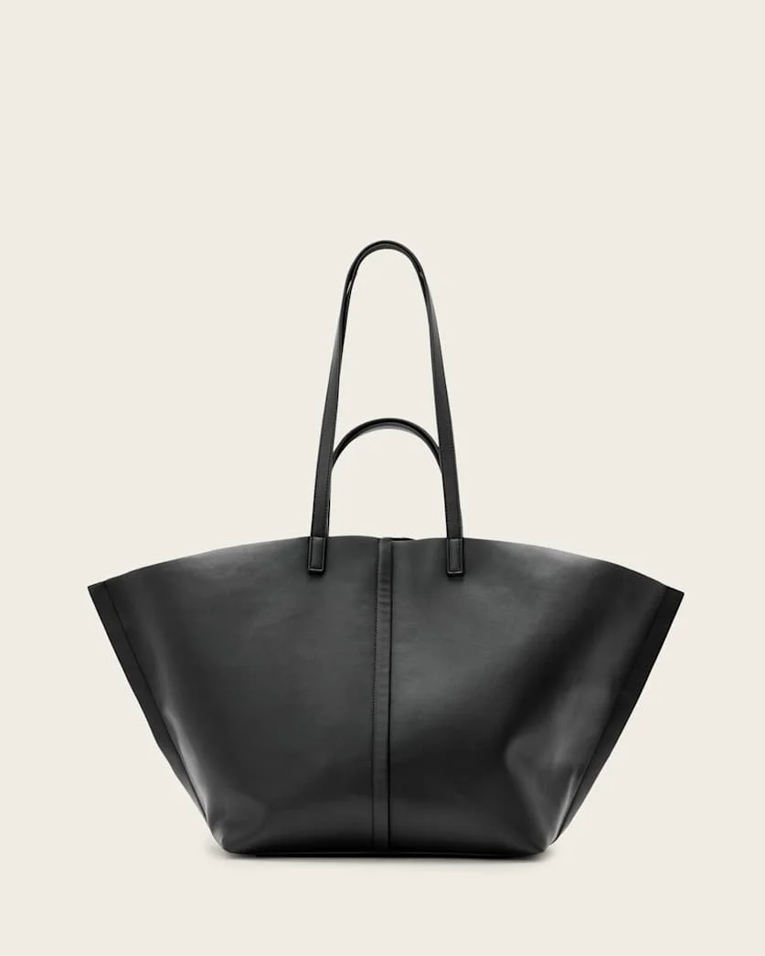 Phoenix Spacious Desserto® Tote Bag Super spacious, the Phoenix Tote Bag is easy to grab and go. Made from an innovative cactus-based biomaterial called Desserto® with deconstructed detail at the side seams, it's perfect for carrying all your essentials. Featuring an internal pocket, secure snap closure and a double strap option, what more could you want? - Press snap closure - Grab and shoulder strap options - Interior slip pocket - Deconstructed side seams - Gold-tone metal studs - Metal hardware - Made from Desserto® – an innovative cactus-based biomaterial derived from Mexican cactus that is distinguished by its softness and durability. FABRIC & CARE: - Height: 35cm, width: 67cm, width at base: 31cm depth: 11.5cm - Coating: 100% polyurethane - Backing: 100% recycled polyamide - Lining: 90% polyester, 10% elastane - Comes with an AllSaints dust bag - AllSaints leather products support responsible manufacturing via the Leather Working Group - Find out more Made in: India Product ID: USW511XB-5