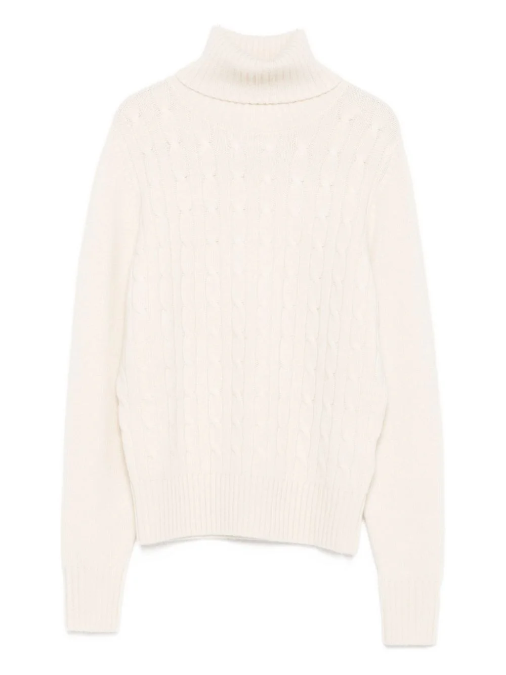 cable-knit turtleneck sweater Highlights - Beige - Turtleneck - Cable knit - Long sleeves - Ribbed cuffs - Straight hem Imported Composition Cashmere 95%, Elastane 5% SIZE & FIT Model measurements Height 5 ft 11 in(1.8 m) Bust/Chest 32.67 in(83 cm) Hips 36.22 in(92 cm) Waist 24.4 in(62 cm) Washing instructions Hand Wash