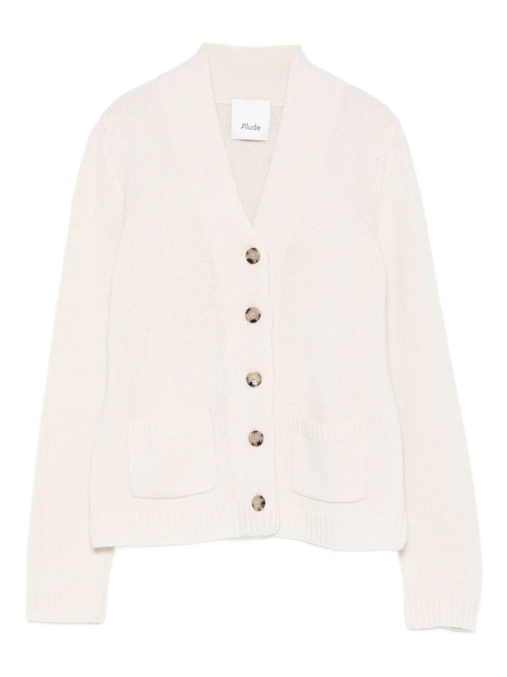 button-detailed patch-pocket cardigan Highlights - Beige - V-neck - Button fastening - Patch pockets - Ribbed trims - Long sleeves Imported Composition Virgin Wool 70%, Cashmere 30% SIZE & FIT Model measurements Height 5 ft 10 in(1.77 m) Bust/Chest 33.07 in(84 cm) Hips 37 in(94 cm) Waist 24.8 in(63 cm) Washing instructions Hand Wash