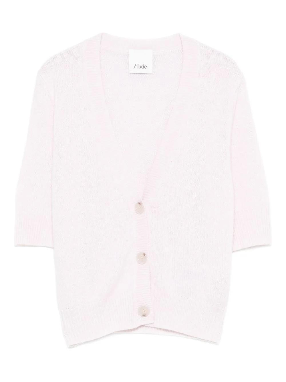 button short-sleeve cardigan Highlights - Light pink - V-neck - Front button fastening - Short sleeves - Ribbed hem - Ribbed cuffs Imported Composition Cashmere 100% SIZE & FIT Model measurements Height 5 ft 10 in(1.78 m) Bust/Chest 31.49 in(80 cm) Hips 37 in(94 cm) Waist 23.62 in(60 cm) Washing instructions Hand Wash
