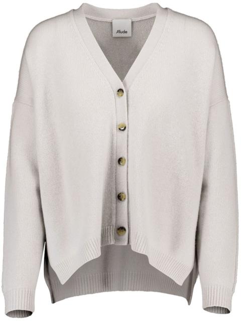 cashmere cardigan Highlights - Ivory white - Cashmere - Fine knit - Front button fastening - V-neck - Drop shoulder - Long sleeves - Side slit - High-low hem Imported Composition Cashmere 100% SIZE & FIT Measurement BUST 39.37 in(100 cm) LENGTH 19.29 in(49 cm) WAIST 37 in(94 cm) SLEEVE LENGTH 17.71 in(45 cm) Shoulder Width 21.65 in(55 cm)