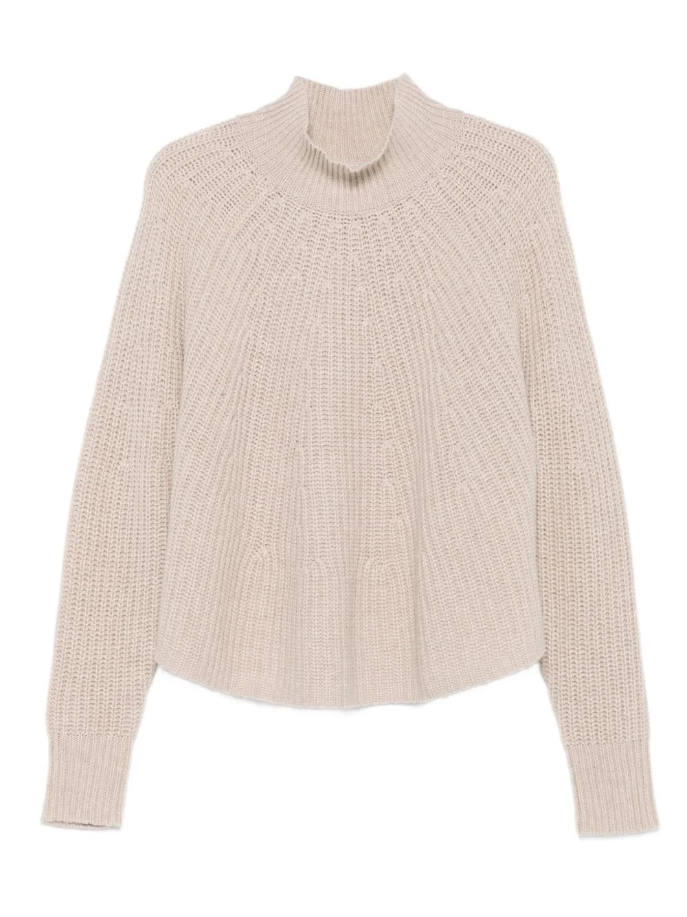 high-neck ribbed-knit sweater Highlights - Beige - High neck - Ribbed knit - Long sleeves - Curved hem Imported Composition Wool 70%, Cashmere 30% SIZE & FIT Model measurements Height 5 ft 9 in(1.75 m) Bust/Chest 34.64 in(88 cm) Hips 36.61 in(93 cm) Waist 26.37 in(67 cm) Washing instructions Read Manufacturer Guidelines