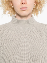 high-neck ribbed-knit sweater Highlights - Beige - High neck - Ribbed knit - Long sleeves Imported Composition Fabric 100% SIZE & FIT Model measurements Height 5 ft 9 in(1.75 m) Bust/Chest 34.64 in(88 cm) Hips 36.61 in(93 cm) Waist 26.37 in(67 cm) Washing instructions Read Manufacturer Guidelines