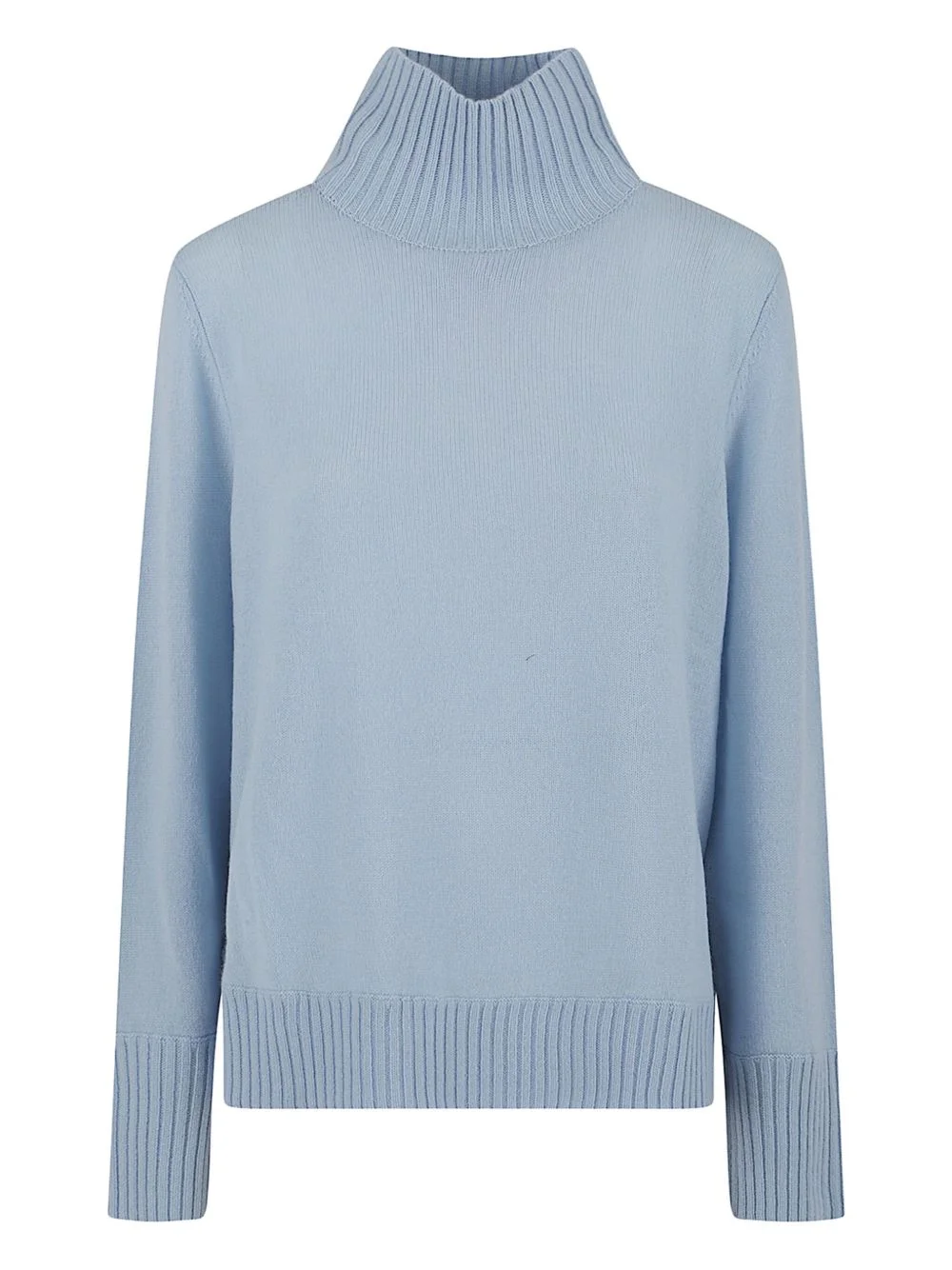 high-neck ribbed knitwear Highlights - Clear blue - High neck - Ribbed knit - Ribbed cuffs - Ribbed hem Imported Composition Virgin Wool 70%, Cashmere 30% Washing instructions Read Manufacturer Guidelines