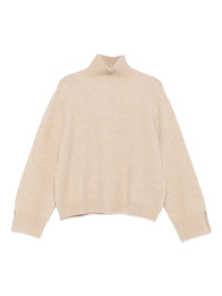 high-neck split-cuff sweater Highlights - Beige - High neck - Long sleeves - Split cuffs - Ribbed hem Imported Composition Merino 52%, Polyamide 24%, Cashmere 22%, Elastane 2% SIZE & FIT Model measurements Height 5 ft 9 in(1.75 m) Bust/Chest 32.67 in(83 cm) Hips 36.22 in(92 cm) Waist 24.8 in(63 cm) Washing instructions Hand Wash