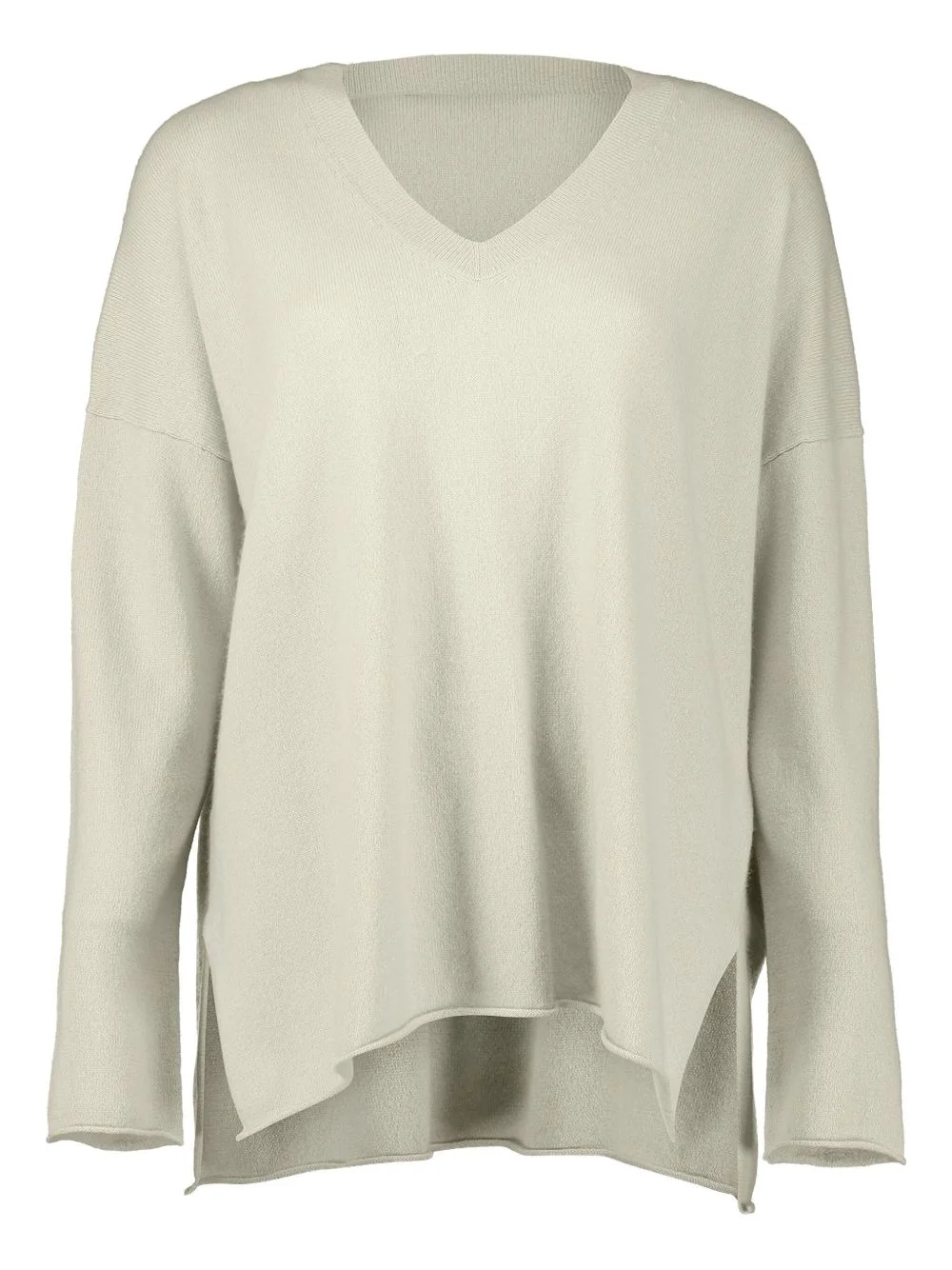 v-neck side-split sweater Highlights - Beige - V-neck - Long sleeves - Side splits - Raw edges - Relaxed fit Imported Composition Cashmere 100% Washing instructions Read Manufacturer Guidelines