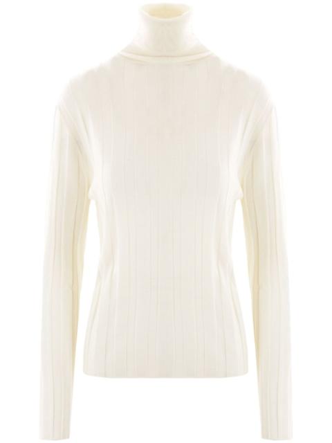 ribbed-knit jumper Highlights - White - Virgin wool - Ribbed knit - High neck - Long sleeves - Straight hem Imported Composition Virgin Wool 100% SIZE & FIT FittingInformation Designed for a slim fit that sits just away from the body offering a close yet comfortable fit Made with a lightweight knit, this piece offers some stretch