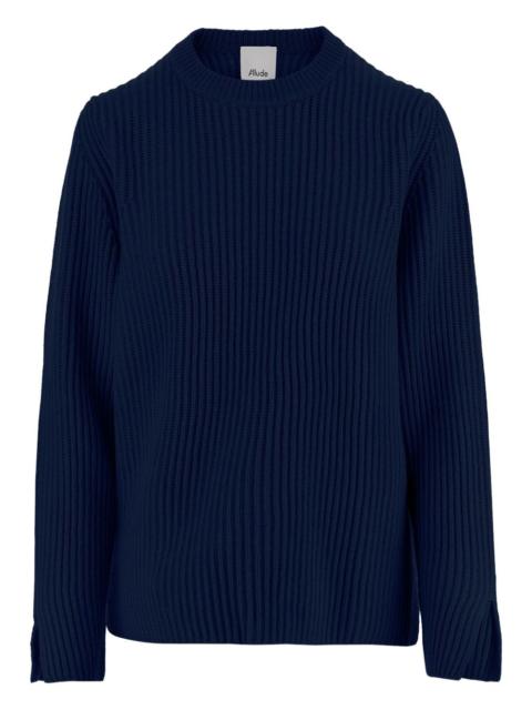 ribbed sweater Highlights - Navy blue - Ribbed knit - Crew neck - Long sleeves - Straight hem - Wool-cashmere blend Imported Composition Virgin Wool 70%, Cashmere 30% Washing instructions Read Manufacturer Guidelines