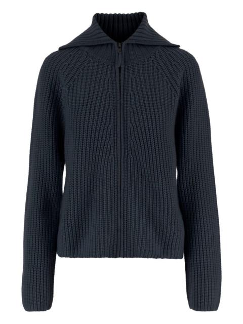 ribbed zip cardigan Highlights - Blue - Ribbed knit - Zip fastening - Raglan sleeves Imported Composition Virgin Wool 70%, Cashmere 30% Washing instructions Read Manufacturer Guidelines