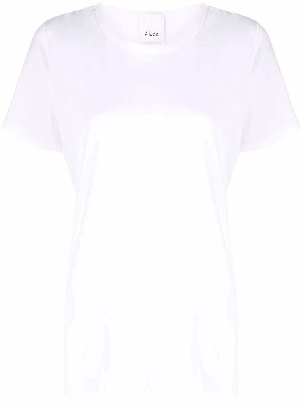 short-sleeve cotton T-shirt Allude is renowned for its exquisite knitwear, but this T-shirt proves they do other designs just as well. This round-neck and short-sleeve classic piece has been made from soft and breathable cotton. Highlights - White - Cotton - Jersey texture - Crew neck - Short sleeves - Straight hem - Unlined Imported Composition Cotton 100% SIZE & FIT Model measurements Height 5 ft 9 in(1.76 m) Bust/Chest 31.88 in(81 cm) Hips 35.43 in(90 cm) Waist 24.8 in(63 cm) FittingInformation This piece fits true to size. We recommend you get your regular size Cut for a relaxed fit Made with a mid-weight fabric