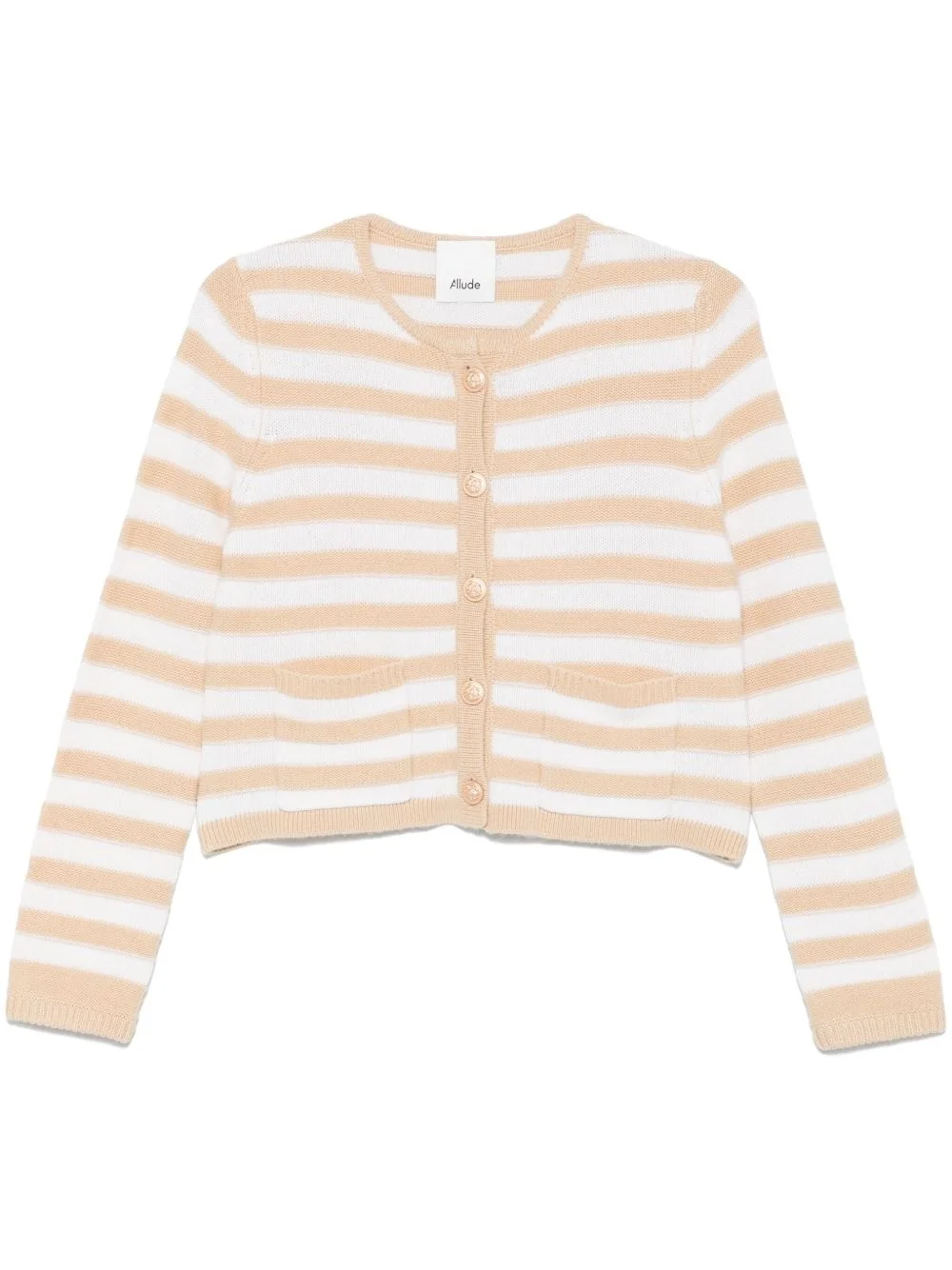 striped cardigan Highlights - Light beige - Front button fastening - Ribbed cuffs and hem - Two front patch pockets - Crew neck Imported Composition Virgin Wool 70%, Cashmere 30% SIZE & FIT Model measurements Height 5 ft 10 in(1.78 m) Bust/Chest 33.46 in(85 cm) Hips 36.22 in(92 cm) Waist 23.22 in(59 cm) FittingInformation Designed to be unstructured, offering a loose fit throughout Made with a midweight knit, this piece offers some stretch