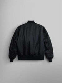 Constructed from mid-weight flight nylon with water resistance, the MA-1 fighter pilot bomber jacket was the first military bomber jacket to cross over into civilian fashion. This current version has been kept as close as possible to the classic military specifications. Male Model Information: - Height: 6'0" - Size: Large BENEFITS - Water Resistant - Reversible FEATURES - Alpha logo on zig-zag zipper extension - MA-1 utility pocket on sleeve - Signature red ribbon on utility pocket - Sleeve shirring - Two lower flap pockets - Two interior welt pockets - Knit rib collar, cuffs and waistband - Ottoman knit cuffs - This garment is a unisex style. This jacket fits true to size for a men’s core fit. Women are recommended to choose 2 size’s down. PRODUCT HISTORY The MA-1 fighter pilot jacket was the first style to transition from the military into civilian fashion.