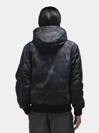 Designed for modern wear, the Hooded Rib Flight Jacket combines functionality with sleek style. Perfect for every day, this versatile jacket includes rib knit cuffs, hem, and collar for a tailored finish. The adjustable hood provides extra coverage, while welt hand pockets and a utility sleeve pocket with the signature red ribbon add practical detail. Lightweight yet structured, this flight jacket is the perfect balance of comfort and everyday style. FEATURES - Rib knit hem, cuff, and collar - Hood with adjustable drawcord - Two welt pockets - Utility pocket on sleeve with Alpha red ribbon MODEL INFO - Height: 6' 1" - Size: Large