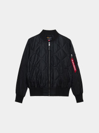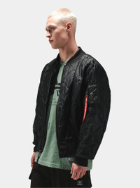 The L-2B Relaxed Quilted is a lightweight, relaxed fit flight jacket. Featuring a water-resistant nylon shell and onion quilting throughout, it’s a perfect jacket for warmer weather. BENEFITS - Water Resistant FEATURES - Unisex style - Onion quilted through and through - Rib knit cuff, collar, and hem - Two welt pockets on front - Utility pocket on sleeve with Alpha red ribbon
