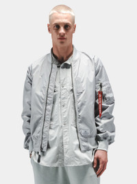 A lightweight nylon jacket with oxygen tab details. This update to our best-selling Skymaster Flight Jacket features the classic zip sleeve utility pocket and oxygen tab detail on side. The water resistant shell and lightweight construction make it ideal for higher temps ahead. Updates from the original Skymaster include welt pockets and lightweight knit rib cuffs. FEATURES - Alpha logo on zipper extension - Ma-1 Utility pocket on sleeve - Alpha Industries Red Ribbon - Nylon oxygen webbing tab on chest - Oxygen tab details on side - Two exterior welt pockets - One interior welt pocket - Alpha paper label near bottom hem BENEFITS - Water Resistant MODEL: Black & OG 107-Green Size: Large Height: 6'2" Frogskin Camo: Size: Large Height: 6'1"