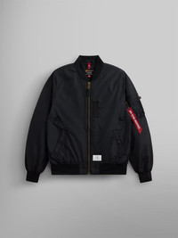 A lightweight nylon jacket with oxygen tab details. This update to our best-selling Skymaster Flight Jacket features the classic zip sleeve utility pocket and oxygen tab detail on side. The water resistant shell and lightweight construction make it ideal for higher temps ahead. Updates from the original Skymaster include welt pockets and lightweight knit rib cuffs. FEATURES - Alpha logo on zipper extension - Ma-1 Utility pocket on sleeve - Alpha Industries Red Ribbon - Nylon oxygen webbing tab on chest - Oxygen tab details on side - Two exterior welt pockets - One interior welt pocket - Alpha paper label near bottom hem BENEFITS - Water Resistant MODEL: Black & OG 107-Green Size: Large Height: 6'2" Frogskin Camo: Size: Large Height: 6'1"