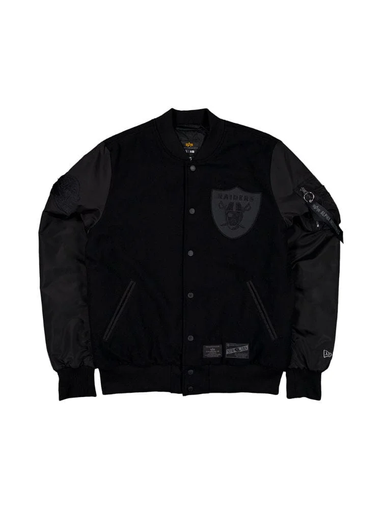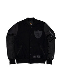 Colors marked down are final sale. Items on final sale cannot be returned or exchanged. Cannot be combined with other discounts or promotions. Joining forces with NFL©, the MA-1 Faux Leather Varsity Bomber Jacket features a variety of traditional team patches. A wool outer shell and sporty details give this bomber a classic look, while an onion quilted lining provides extra insulation and comfort. FEATURES - New Era x NFL team patch on front right chest and left sleeve - Alpha logo on zig-zag zipper extension - MA-1 utility pocket on sleeve - Team logo and name on back - Signature red ribbon on utility pocket - Sleeve shirring - Two lower flap pockets - Two interior welt pockets - Knit rib collar, yarn dye stripe cuffs, and waistband - Ottoman knit cuffs