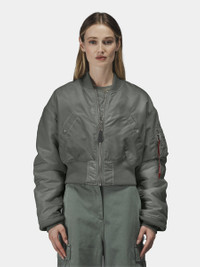 Colors marked down are final sale. Items on final sale cannot be returned or exchanged. Cannot be combined with other discounts or promotions. A modern update to an iconic silhouette, the Cropped MA-1 Flight Jacket offers bold style with classic functionality. Made from durable, water-resistant flight nylon, this jacket is reversible and fully lined, allowing versatile wear. The cropped cut adds a contemporary edge, while details like the knit collar, cuffs, and waistband preserve its heritage roots. Featuring two exterior flap pockets and the signature MA-1 utility pocket with red ribbon, it balances fashion with function. Designed in a regular fit, this jacket brings statement style to everyday wear. BENEFITS - Water resistant FEATURES - Cropped - Fully lined - Knit collar, cuffs, and waistband - Two exterior flap pockets and MA-1 utility pocket with Alpha red ribbon on sleeve MODEL INFO - Height: 5' 8" - Size: Small