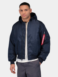 The MA-1 Hooded Oxford Flight Jacket reimagines a military classic with a casual edge. Constructed from durable oxford nylon, this relaxed-fit jacket features a self-fabric hood for a seamless look. Traditional details like rib knit trim on the hem, cuffs, and collar maintain its iconic silhouette, while two welt pockets and a sleeve utility pocket with red ribbon add authentic function. Stylish and versatile, this jacket is a go-to layer for transitional weather. BENEFITS - Water Resistant FEATURES - Self fabric hood - Rib knit on hem, cuff, and collar - Two welt pockets - Utility pocket on sleeve with Alpha red ribbon