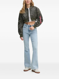 zip-up cropped bomber jacket Highlights - Olive green - Zip fastening - Ribbed hem - Front pockets - Removeable tag Imported Composition Outer: Nylon 100%, Polyester 99%, Spandex/Elastane 1% Lining: Nylon 100% Washing instructions Read Manufacturer Guidelines