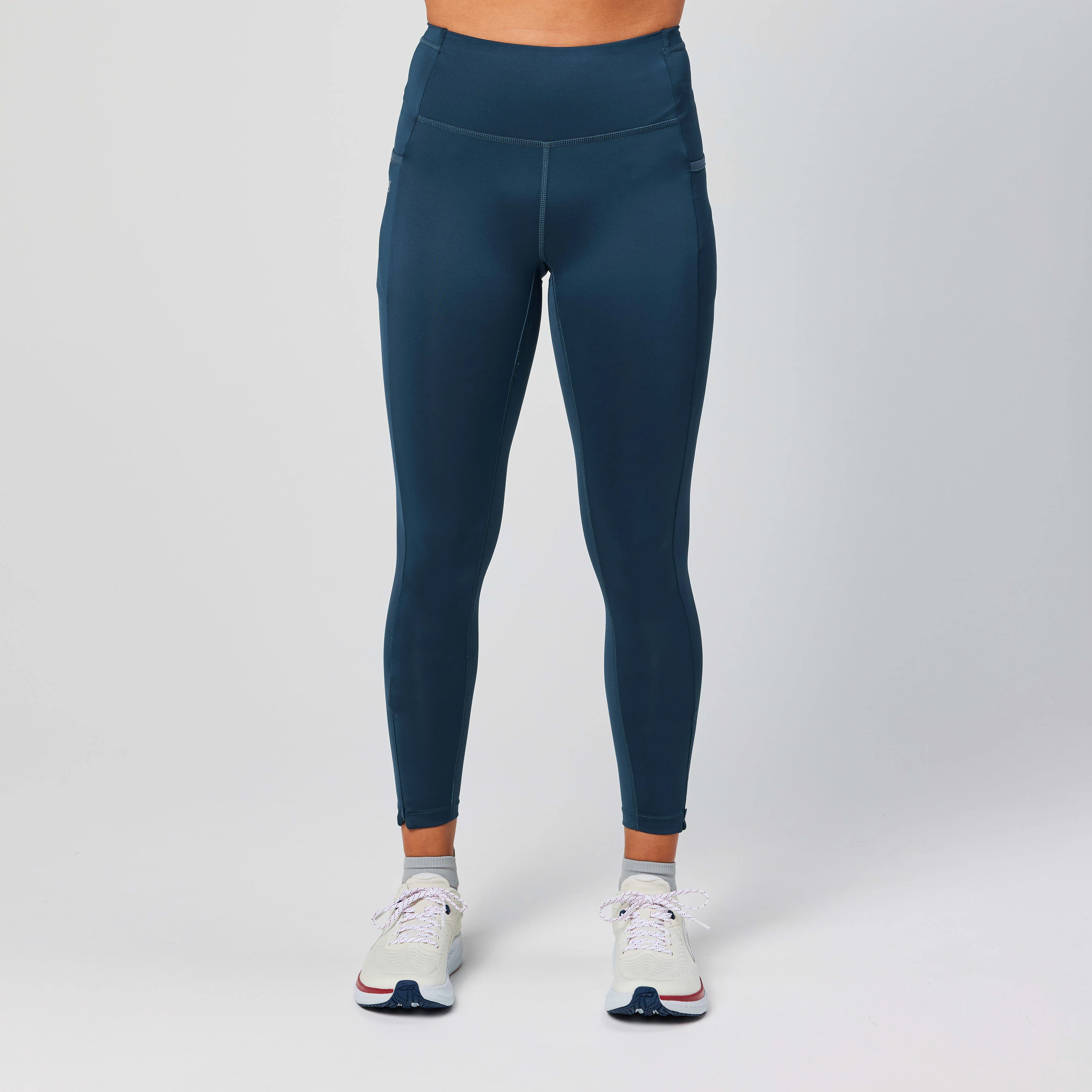 Crush your training runs or run your errands in style with the Core Crop Tight, featuring a double layer pouch mesh and knit for breathability. With a comfortable high waist and slip-in stash pockets, you’ll have everything you need to tackle your run, workout, or day. It’s equipped with ankle zippers so you can adjust as needed. This tight is 7/8 length and is made with recycled, moisture wicking interlock knit, and power mesh material. DETAILS - Best for: Running, walking - Materials: Recycled Polyester, Elastane, Nylon - Care: Machine wash cold on gentle cycle. Do not bleach. Tumble dry on low. Do not iron.