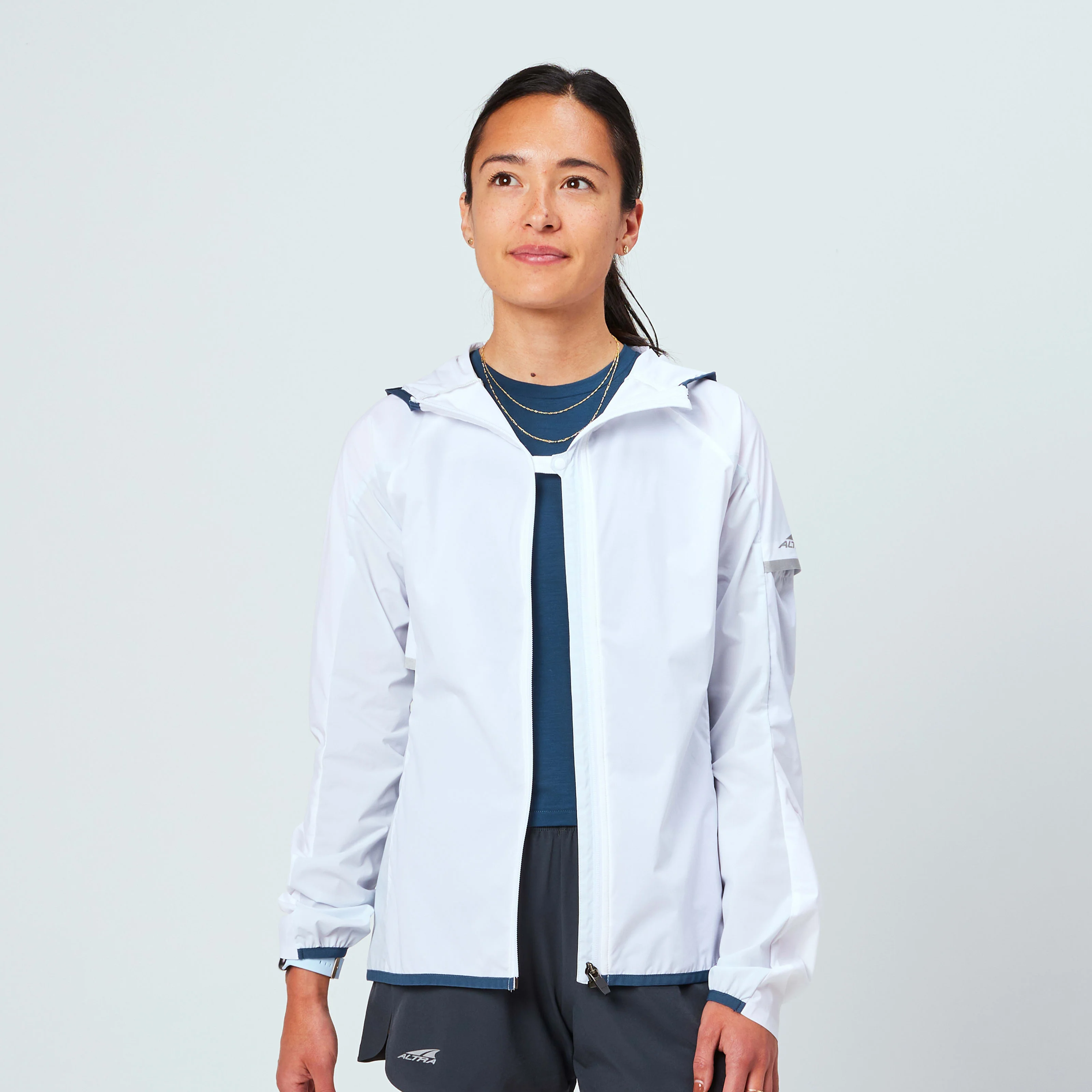 Make your next trail run or hike easy, even if it’s breezy. This full-zip, packable jacket adds an extra layer of woven material to keep you comfortable out there. Featuring cinch hardware in the hood for an adjustable fit, a full-length zipper with a snap button for added security, and a reflective logo and detail on the back and arm. Stow it easily with an integrated packing feature on the left sleeve so you can save space in your pack for more trail snacks. DETAILS - Best for: running, hiking - Materials: Polyester, Elastane, Nylon - Care: Machine wash cold on gentle cycle. Do not bleach. Tumble dry on low. Do not iron.