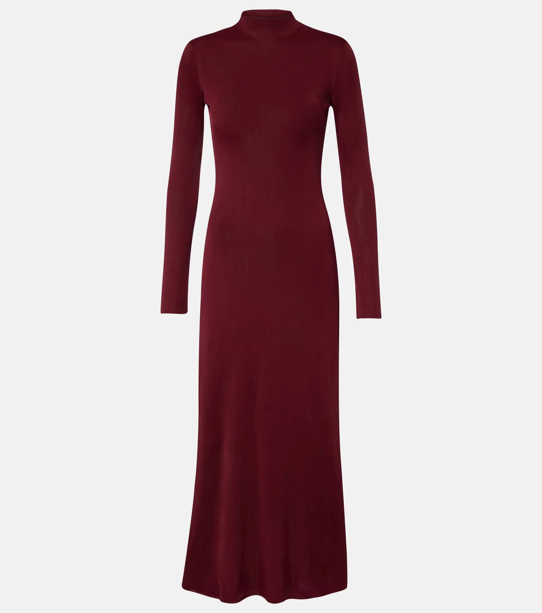 Informed by founder Joseph Altuzarra’s multicultural upbringing, each Altuzarra piece speaks to the power of considered elegance. Made from burgundy-hued jersey, this midi dress features a mock neckline, gently draped skirt, and long sleeves. Product Details - Material: 100% rayon - Care instructions: dry clean - Made in China - Color: burgundy - Designer color name: Maroon - Item color: burgundy - Collar: mockneck - Sleeves: long-sleeved - Item number: P01144232 Size & Fit - True to size - Fitted - Slightly stretchy fabric - The model seen in the picture is 178cm-5'10" and wearing a size XS