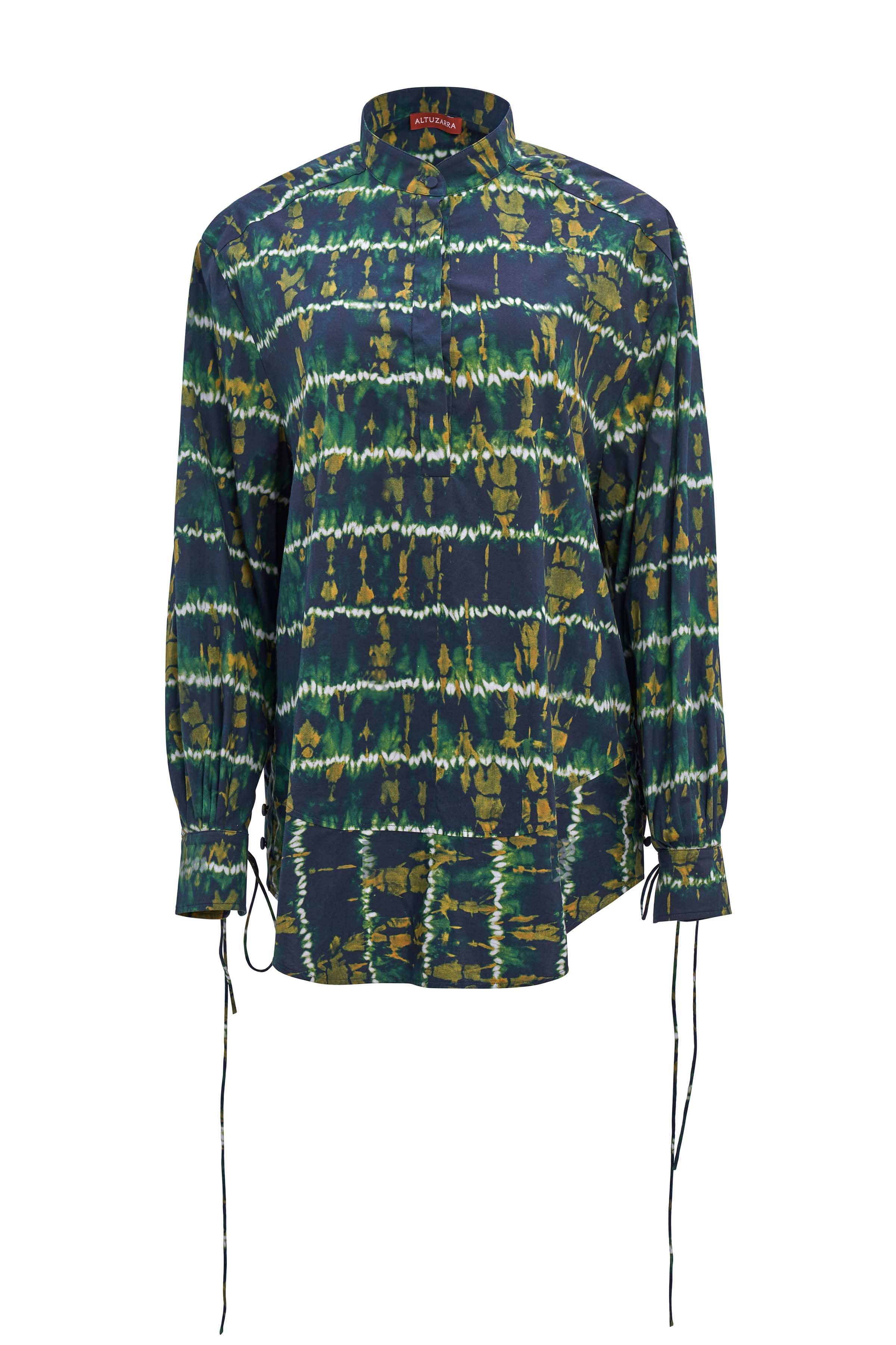 The ‘Amara’ top is unexpectedly reworked with Shibori tie-dye - an Altuzarra signature inspired by the ancient Japanese craft. Crafted from stretch-cotton, the relaxed tailored style is finished with a half button placket and versatile tie fastenings at the cuffs. Details - Relaxed fit - Long sleeves - Tie fastening at cuffs - 100% Cotton - Model is 5'10" and is wearing a size 34
