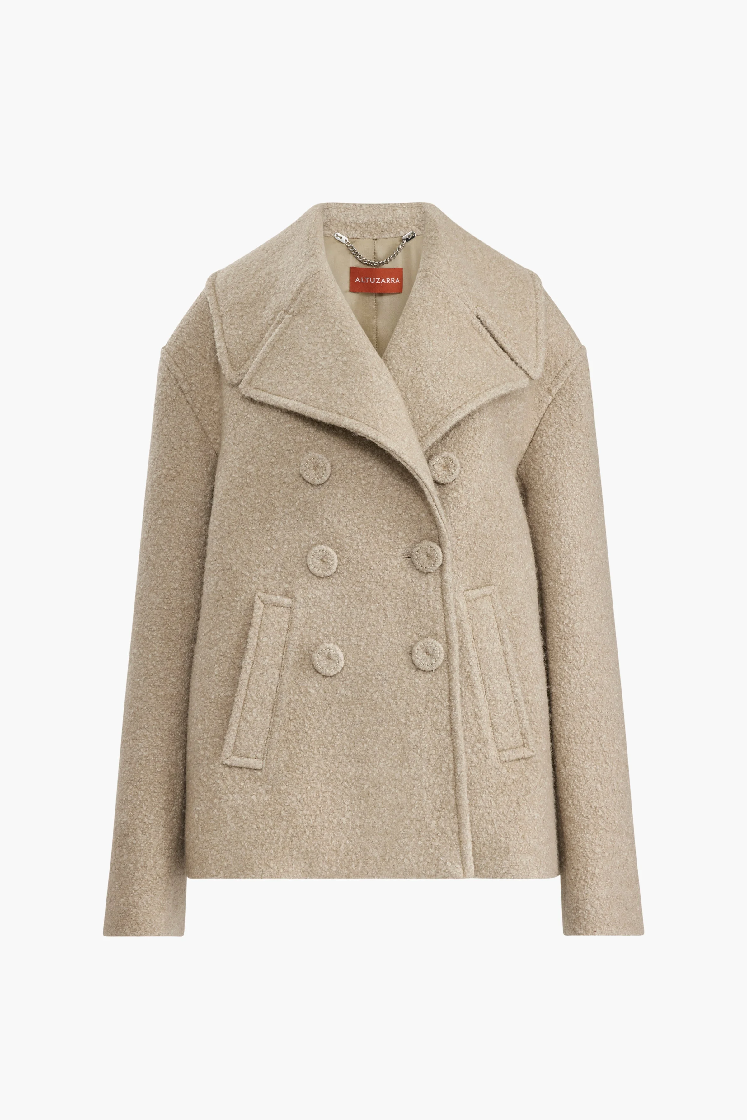 The Askania coat is made from tactile boucle that's blended with naturally insulating wool. It features a double-breasted silhouette with an oversized collar. Details '- 50% Virgin Wool 19%Viscose 18%Poly-Cotton 11%Polyester 2%Polyamide. Made In Italy Model is 5'10" and she is wearing a size 36