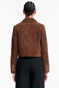 The Astley jacket is expertly made from lamb's leather to a slightly cropped silhouette. Note the two-tone buttons decorating the front and cuffs like jewelry. Details 100% Lamb Leather. Made in Turkey